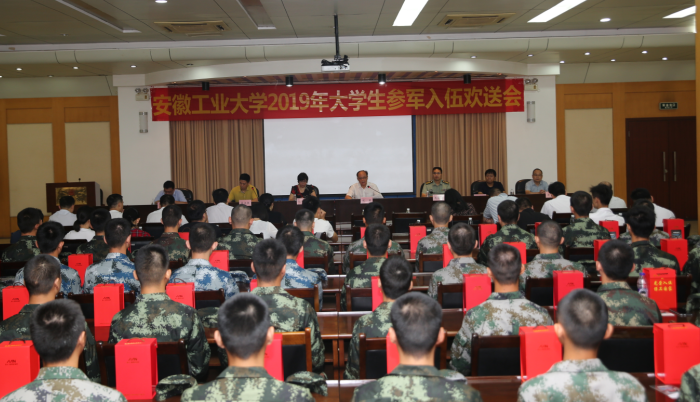 9月9日上午,威尼斯官网2019年大学生参军入伍欢送会在佳山校区举行。副校长刘明,花山区人武部部长赵德全,花山区退役军人事务局局长刘雯,学生工作部(处)、武装部、教务处、团委及各学院学生工作负责人、辅导员和全体新兵参加欢送会。校党委武装部部长吴文兵主持欢送会。