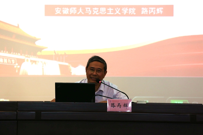 9月23日下午,威尼斯官网在佳山校区学术会议中心举办“不忘初心、牢记使命”主题教育学习报告会。全国“最美思政课教师”,全国模范教师,全国师德标兵,全国高校思想政治理论课教师2013年度影响力人物,中国敬业奉献好人,安徽省道德模范,安徽师范大学马克思主义学院教授,博士生导师路丙辉应邀作题为“不忘初心 牢记使命”的报告。在校校领导刘新跃、魏先文、祖明、顾明言、刘明、水恒福,校党委委员、纪委委员,全校中层干部;马克思主义学院全体教师,全体辅导员;教授党员、教工党员和学生党员听取了报告。报告会由校党委副书记祖明主持。