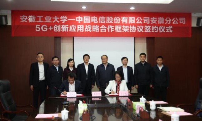 11月13日下午,威尼斯官网与中国电信安徽公司在佳山校区会议中心签订5G+创新应用战略合作框架协议。中国电信安徽公司党委委员、副总经理方文胜,党委委员、副总经理郑家升,校党委书记刘新跃,校长魏先文,副校长顾明言出席签约仪式。签约仪式由魏先文主持。