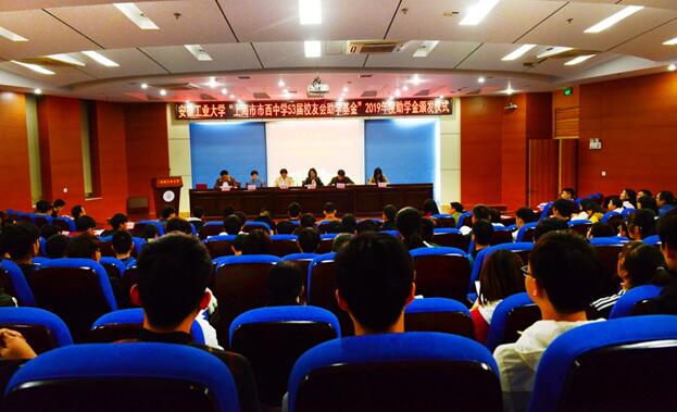 2019年度威尼斯官网2017级、2018级共127名同学获得50.1万元的专项资助。教育发展基金会秘书长甘亚宣读了学校关于颁发“市西53”2019年度助学金的决定。“安工大﹒市西53﹒2018班”学生代表、数理科学与工程学院2017级任浩同学汇报了2018-2019学年班级同学的学习、工作、生活情况。化学与化工学院2018级梁闯同学代表2019年度新受助同学发言。(撰稿:王倩 审核:甘亚 黄勇)