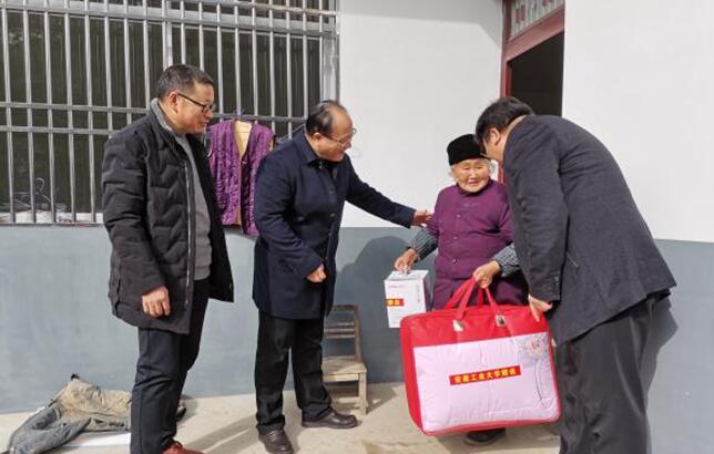 “我这么大年纪还住上了新房,这是以前没有想到的事,感谢党和政府,感谢安工大,帮助我进行危房改造。”贫困户简世如激动地说。刘新跃、魏先文分组走访了学校捐资进行危房改造的贫困户以及村里的大病户、边缘户。每到一户,他们都详细询问贫困户、大病户、边缘户的家庭状况、身体近况、经济来源、生活开支等情况,向他们宣传国家扶贫政策,鼓励他们树立信心,克服眼前困难,发展产业、增加收入、脱贫致富。慰问组还为贫困户送去了棉被、电水壶等慰问品,预祝他们过一个愉快、祥和的新年。