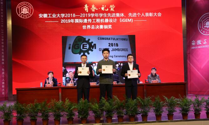 祖明宣读了学校2018-2019学年学生表彰决定。校领导为获得暑期社会实践优秀团队、校“十佳班级”、校“三好学生标兵”、宝钢优秀学生奖学金、国家励志奖学金、国家奖学金、第十四届大学生职业规划设计大赛暨创业大赛省赛金奖、2019年“挑战杯”大学生课外科技作品大赛国家级二等奖(省级特等奖)、RoboCup2019世界杯仿真2D机器人足球赛第四名、2019年国际遗传工程机器设计(iGEM)世界总决赛铜奖等十大类奖项的先进集体、先进个人代表颁发奖牌、证书。