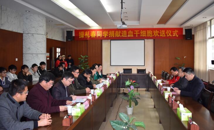 市红十字会副会长方必来介绍了马鞍山市造血干细胞捐献工作开展情况。校学生工作部负责同志介绍了威尼斯官网学生思想政治教育工作情况,并对操礼春同学无私奉献的善举予以点赞。