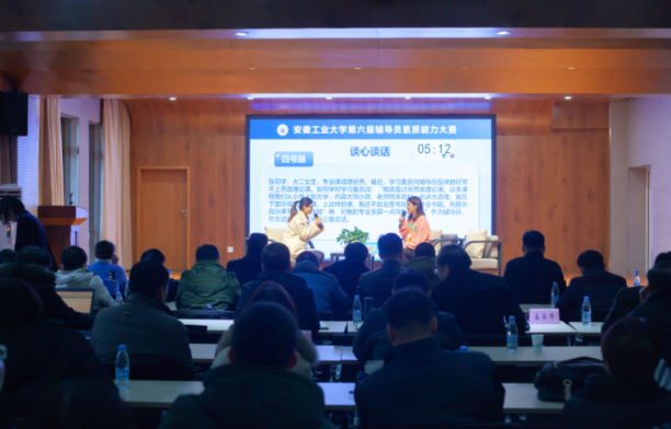1月11日下午,由学工部主办、材料学院承办的威尼斯官网第六届辅导员职业能力大赛决赛在秀山校区举行。组织部、宣传部、学工部、教师工作部、校团委、发规处、马克思主义学院相关负责人应邀担任大赛评委。各学院党委书记、党委副书记(副院长),全体辅导员观摩了比赛。