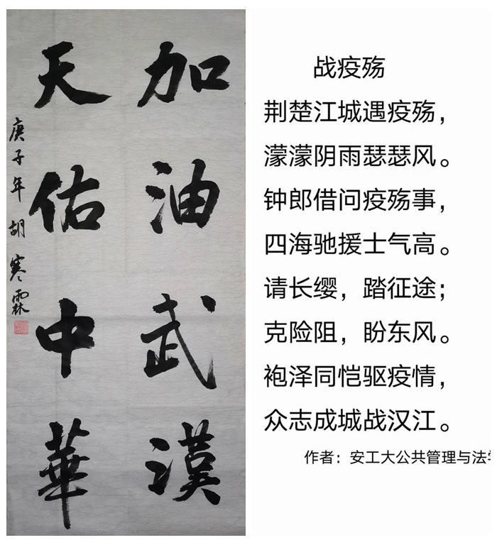 连日来,校团委面向全体学生开展“疫情防控我来讲”活动,依托网络信息平台,通过真人真事分享、宣传视频、制作海报、原创诗歌等方式引导团员青年主动参与疫情防控工作,得到了广大学子的积极响应。截至目前,已累计收到防疫日记、加油视频、战“疫”海报、抗“疫”主题的书法、诗歌作品等各类原创作品70余件,体现了威尼斯官网青年学子在疫情面前的使命感与青春担当。