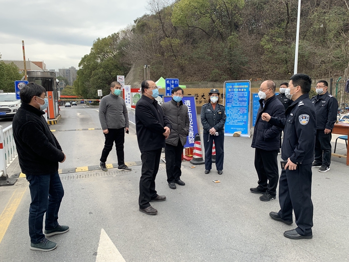 10日下午,刘新跃、魏先文、刘明带领办公室、后勤处、安保部主要负责人对两校区开展巡查,慰问安保、后勤和相关值班人员。在佳山校区西北门、东门和秀山校区人才公寓门慰问安保值班人员,查看校园封闭管理和人员体温检测情况,翻看人员登记本,要求安保人员严格执行马鞍山市通告要求,执行省教育厅“五个一律”纪律,严防死守,为校区和师生安全守好第一道门。在校医院听取院长祝为平关于校医院医疗诊治和发热送诊情况介绍,嘱咐医护人员在做好自身防护的同时,严格落实发热送诊和跟踪观测工作。在秀山校区教工便利超市,逐一询问了蔬菜价格,了解进货渠道和食品安全措施,嘱咐后勤同志做好疫情防控期间生活必需的基本保障,现场决定尽快开放佳山校区菜场,为教职工提供生活便利,进一步减少人员校内外流动。在秀山校区人才公寓查看了电梯消毒情况,肯定了后勤物业落实消毒措施和提供电梯按键抽纸的人性化措施。在留学生公寓查看了留学生在校管控和生活便利服务情况,与正在值班的国际教育学院工作人员和留学生交流,关心留学生在校生活和健康防护情况。在校园110指挥中心,仔细查看校园各重点部位,肯定前一阶段管控成效,提出完善要求。