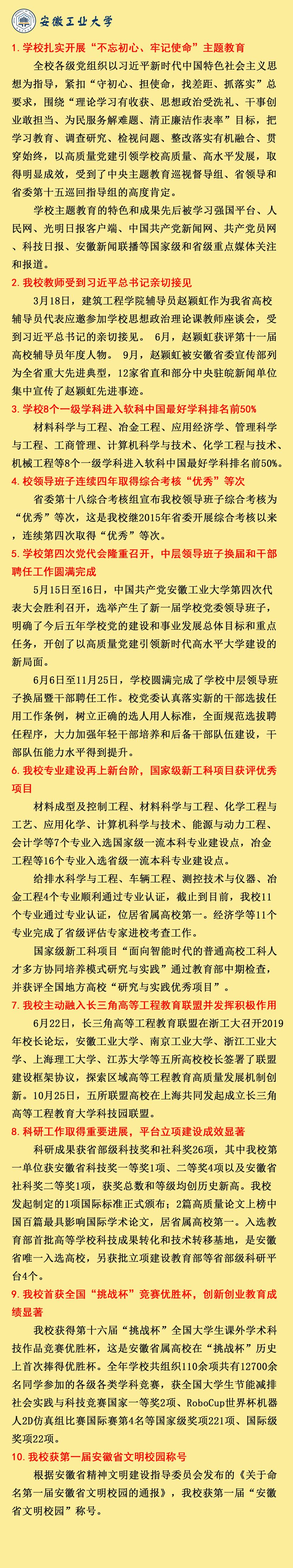 威尼斯官网2019年“十件大事”评选结果于近日揭晓。2019年12月3日,校工会、党委宣传部向全校征集2019年“十件大事”候选题并开展投票评选工作,截至2020年4月15日,共有1833名教职工参与投票。经统计排序并报学校党委常委会研究,最终确定2019年“十件大事”。