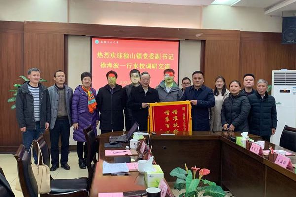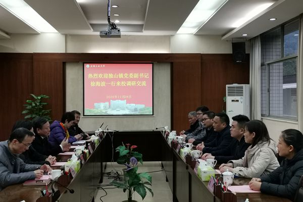 徐海波介绍了独山镇基本情况、脱贫攻坚工作开展情况及未来发展规划等,对学校驻村干部扎实的工作作风、良好的大局意识和责任意识以及取得的工作成绩表示赞扬。他对学校近年来在脱贫攻坚等方面给予的大力支持表示衷心感谢,并希望学校在产业发展、消费扶贫、乡村振兴等方面继续给予指导和支持。