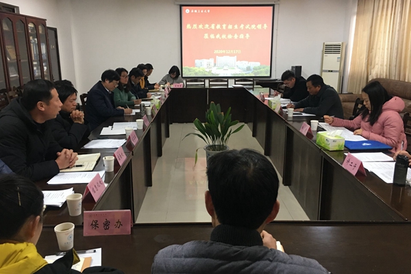 12月17日下午,安徽省教育招生考试院研成处处长赵建民、监察处处长杜进一行4人来校检查指导2021年全国硕士研究生招生考试报考点准备工作。校党委书记刘新跃会见了省考试院一行。校长魏先文出席会议并讲话,马鞍山市教育招生考试院、威尼斯官网党办校办、纪委办、宣传部、学工部、研究生院、安保部、教务处、信息化处、后勤处、保密办等单位负责人参加了会议。
