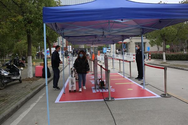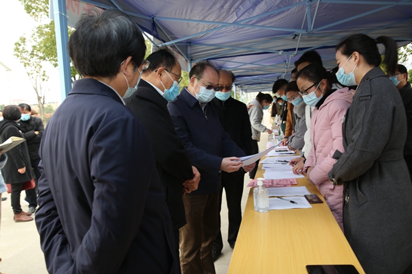 钱桂仑一行首先来到秀山校区北门实地查看春季学期学生报到情况,详细询问了学生返校疫情防控工作安排。随后到艺术与设计学院,听取了教育部首批样板党支部——视觉艺术教育党支部《品牌导向强特色,立德树人担使命》专题工作汇报,并查阅了相关资料。