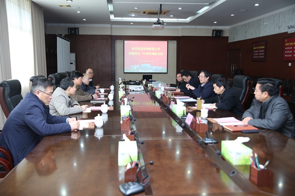 3月4日下午,阜阳师范大学校长程曦一行5人来校调研。校长魏先文、副校长水恒福,研究生院、国际合作与交流处以及商学院等部门负责人参加座谈会。会议由魏先文主持。