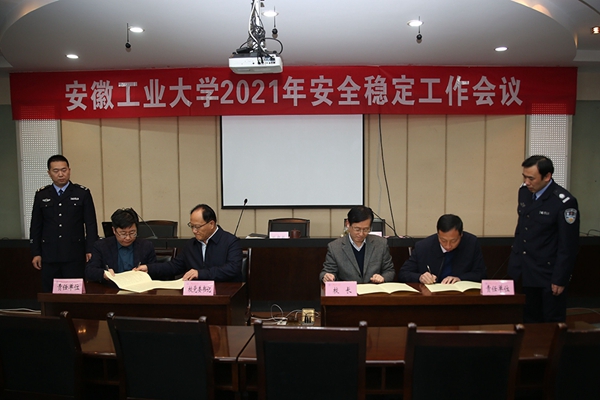 会上,刘新跃、魏先文代表学校与学院(部门)党政负责同志代表签订了《威尼斯WWW4328882021年安全稳定及意识形态工作目标责任书》。