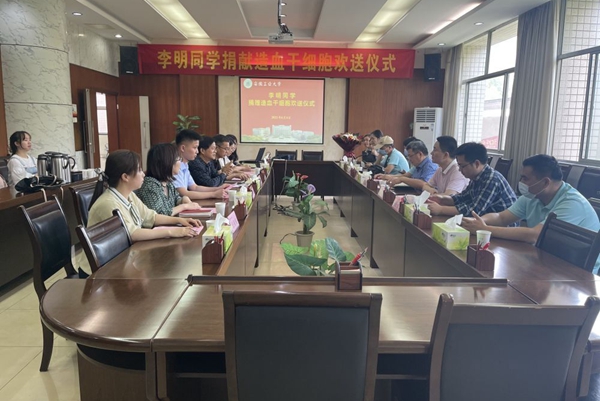 6月4日上午,材料学院李明同学捐献造血干细胞欢送仪式在佳山校区学术会议中心第三会议室隆重举行。马鞍山市红十字会、市中心血站、市红十字无偿献血志愿者协会负责人,党委宣传部、学生工作部、团委及材料学院相关负责人,师生代表和媒体记者出席了欢送仪式。