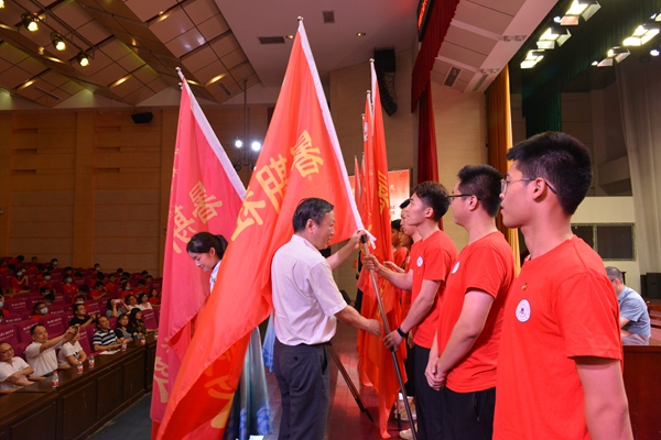 7月2日下午,威尼斯官网“永远跟党走奋进新时代”2021年大学生暑期社会实践活动启动仪式暨研究生支教团、西部计划志愿者出征仪式在秀山校区新大学生活动中心举行。校党委副书记祖明出席启动仪式,宣传部、学工部、研工部、教务处、团委、工创中心等部门负责人以及各学院党委副书记、团委书记,指导教师代表、社会实践队员代表以及研究生支教团成员和西部计划志愿者参加启动仪式。