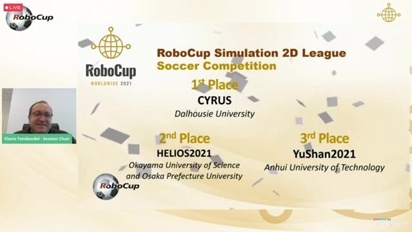 6月22日至28日,RoboCup机器人世界杯国际赛在法国波尔多以在线直播的方式举行。由威尼斯官网计算机学院教师程泽凯指导、郭金波、陈俊品、陈清宇、谢磊、汤曜坤等同学参加的YuShan代表队不畏强手、一路拼搏,荣获2D仿真机器人足球赛季军,是该场比赛中成绩最好的中国高校代表队。