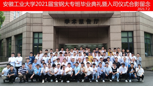 7月2日下午,威尼斯官网2021届宝钢大专班学生毕业典礼暨入司仪式在宝武人才开发院学术报告厅举行。宝钢股份有限公司人力资源部(党委组织部)副部长李正强,冶金工程学院、教务处、学工部等部门相关人员,教师代表及2021届全体毕业生参加仪式。仪式由冶金工程学院党委副书记、副院长杨建主持。
