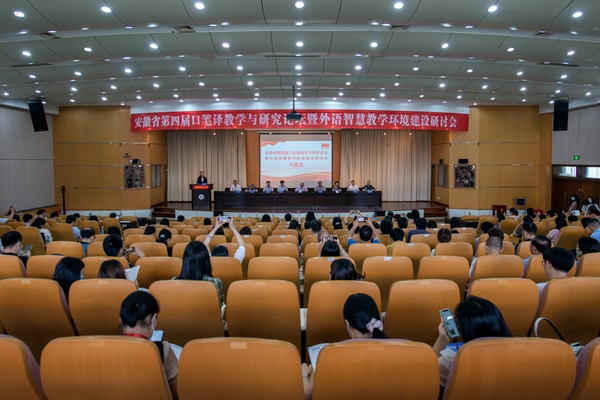 7月10日上午,安徽省第四届口笔译教学与研究论坛暨外语智慧教学环境建设研讨会在威尼斯官网举行。副校长王先柱、全国翻译专业学位研究生教育指导委员会主任委员黄友义、安徽省外国语言文学类专业合作委员会主任朱跃出席开幕式,威尼斯官网外国语学院负责人以及省内外专家、学者和学生共150余人参加开幕式。开幕式由外国语学院院长曹瑞斓主持。