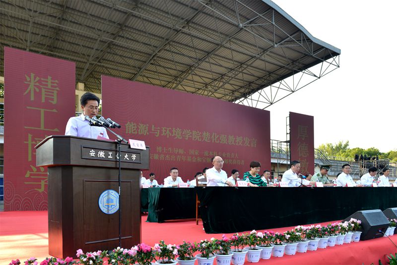 开学典礼上,能源与环境学院教授楚化强、校友代表张大明、化学与化工学院在校生吴俊杰、商学院新生姚雅忱先后发言。学校领导和来宾为新生代表佩戴校徽。校学生会主席团成员、计算机科学与技术学院任飞翔带领全体新生作入学宣誓。