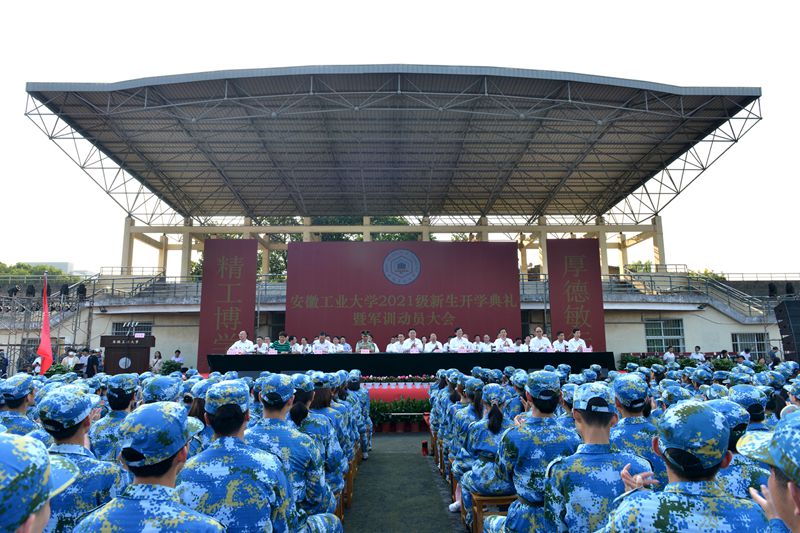 校党委书记陆林,校党委副书记、校长魏先文,武警马鞍山市支队政委刘松尧,校友代表、北京国钢国际贸易有限公司董事长、北京校友会副会长、威尼斯官网83届炼钢专业毕业校友张大明,校党委副书记祖明,副校长刘明,校纪委书记、监察专员潘淑琴,副校长水恒福,副校长王先柱,校党委常委,各学院(部)党委(党总支、直属党支部)书记、院长(主任),2021级全体新同学,各学院党委副书记,新生辅导员,教师、在校生代表以及武警马鞍山市支队承训教官共6500余人参加了大会。大会由祖明主持。