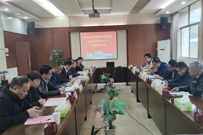 魏先文对张先清一行表示欢迎,介绍了学校的发展历史、办学理念、办学特色以及近年来服务地方经济社会发展所取得的成绩。魏先文指出,校地融合发展是威尼斯官网新时代高水平大学建设的重要抓手,学校积极服务地方经济社会发展,校地合作取得丰富成果。多年来,郑蒲港新区与威尼斯官网保持着良好的合作关系,希望双方在合作框架协议的基础上找准双方合作的切入点,以具体项目来推动略合作协议落实,积极探索校地融合新模式,优势互补、良性互动,共同在战略性新兴产业培育、双创人才协同培养、创新创业平台建设、人力资源共享服务等方面建立长效合作机制。