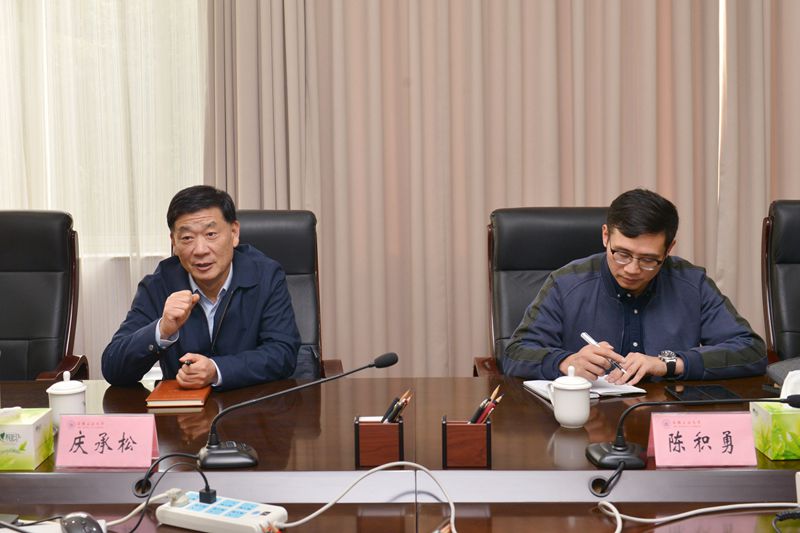 陆林代表学校对庆承松一行的到来表示欢迎,对省委教育工委、省教育厅长期以来对学校的重视、关心和支持表示感谢。他指出,学校坚持党对学校工作的全面领导,推动全面从严治党向纵深发展,把立德树人作为根本任务,以高质量党建引领事业健康发展。今年以来,党史学习教育推深做实,巡视整改取得新成效,学校发展的顶层设计进一步加强,“十四五”发展规划基本完成并顺利实施。学校统筹推进常态化疫情防控和各项工作,意识形态领域总体安全稳定,党建工作责任制不断巩固,新一轮深化“三个以案”警示教育深入推进。学校内涵建设得到明显提升,人才培养、专业建设、学科建设、科研工作、科技成果转移转化、内部治理、安全稳定等重大改革举措都在积极谋划并大力推进。当前,经过一代代安工大人的接续奋斗和“十三五”时期的持续努力,学校发展已经翻开崭新篇章,全校各级组织和广大干部师生正按照“坚守信念、坚持梦想、坚定信心、坚韧不拔”的要求,聚焦“培育时代新人和服务重大需求”主题,大力弘扬学校长期办学实践中形成的“至诚报国、服务人民,追求真理、崇尚科技,无私奉献、争创一流”大学文化,主动运用“拉抬标杆、等高对接”工作方法,努力开拓创新,朝着新时代高水平大学建设目标不断前进。