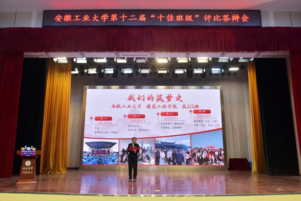 经各班级申报立项、开展创建,各学院择优推荐,2024-2025学年全校共有14个班级从“百优班级”中脱颖而出入围校级展评环节。答辩会前,评委们对候选班级创建展示材料进行集中评审。答辩会上,各班级通过PPT汇报、情境表演等形式展示班级在思想引领、学风建设、科研学术、社会实践、安全教育等方面取得的显著成效。