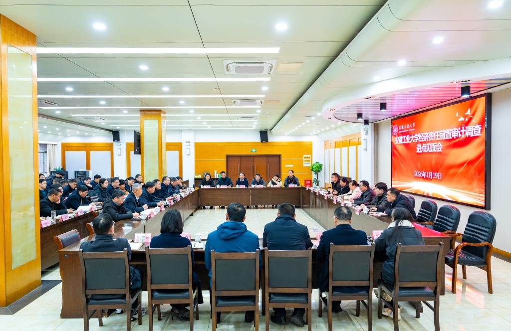 1月19日下午,学校召开经济责任前置审计调查进点见面会。省委教育工委、省教育厅第一审计调查组组长廖文秋、副组长陈旭及审计调查组全体成员,全体校领导出席,校党委常委,各院(部)、机关各部门、校直各单位负责人参加。会议由校党委副书记、校长曾杰主持。