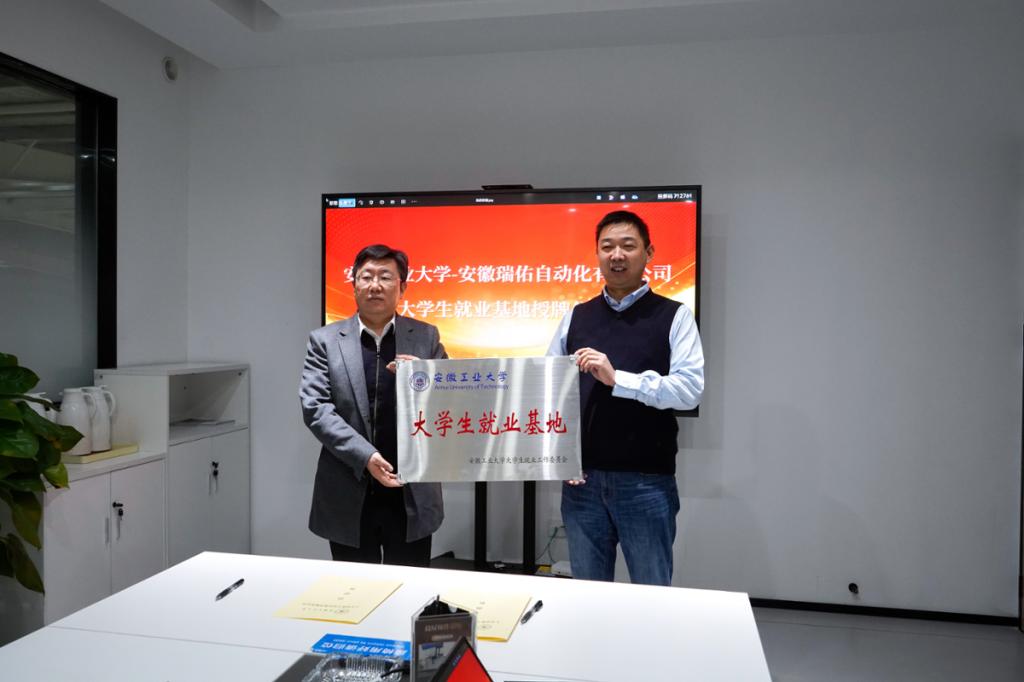 期间,张世宏代表学校向安徽瑞佑自动化科技有限公司授予“威尼斯WWW432888大学生就业基地”牌匾,校企双方签订《人才培养与就业基地建设合作协议书》。