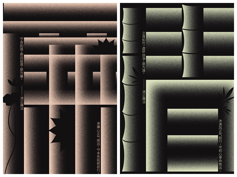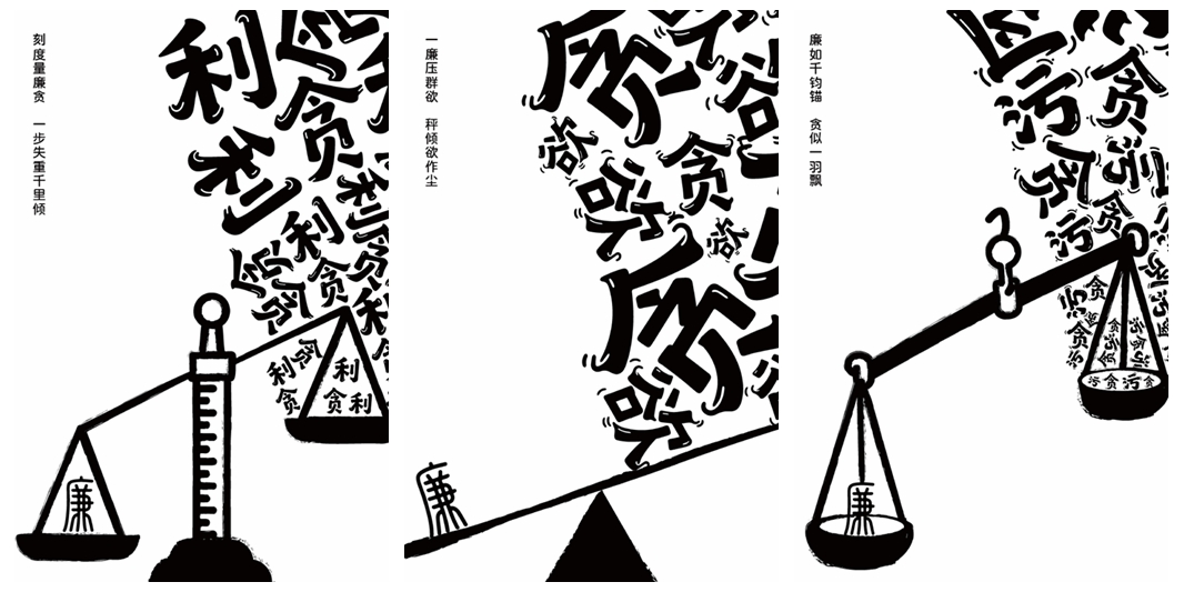 其中,《度量贪廉》由艺术与设计学院陈超同学创作,以天平为创意载体,天平失衡寓意“守廉如持衡,失廉则倾覆”。《意见箱》由艺术与设计学院刘同喆同学创作,以“意见箱”为核心,传递“意见箱是监督窗口,助力廉洁前行”的理念。《廉洁清行》由艺术与设计学院方雨蕊同学创作,以竹为创意载体,借竹节、竹叶构成画面,用竹的意象和质感诠释廉洁内涵。