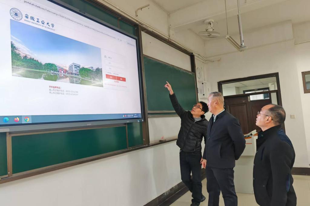 在秀山校区教学楼,闵凡飞对相关单位假期坚守岗位、推进多媒体教室改造升级、改善办学条件取得的成效给予充分肯定,要求进一步强化服务意识,层层压实工作责任,全面复查调试教学设施;加强任课教师操作培训,完善技术支持体系与应急处置预案,确保突发情况快速响应;持续优化教学环境建设,营造安全、舒适、高效的教学氛围,全力护航教学秩序稳定运行。