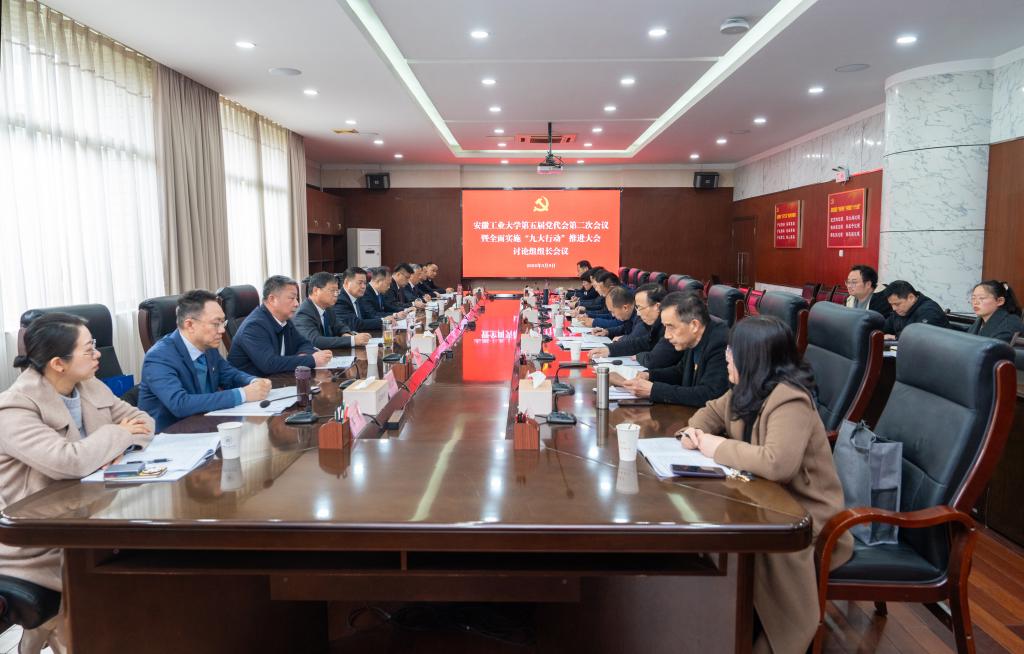 在充分肯定成绩的同时,报告还分析了学校发展面临的机遇和挑战。就做好2026年学校党委重点工作,报告强调,2026年是中国共产党成立105周年,是“十五五”开局之年,也是学校“九大行动”纵深推进、聚力攻坚的重要时期,是“十五五”规划启动实施、务求实效的关键阶段。要按照省委十一届十一次全会和全省“新春第一会”工作部署,聚焦成人成才,力求铸魂行动发掘新内涵;聚焦提能升级,力求筑峰行动实现新突破;聚焦硬核攻关,力求突围行动收获新进展;聚焦应用转化,力求赋能行动激发新活力;聚焦强师兴教,力求聚智行动构筑新支撑;聚焦传承创新,力求润泽行动引领新风尚;聚焦互融共赢,力求扩圈行动开创新局面;聚焦立规建制,力求经纬行动提升新效能;聚焦纾困解难,力求暖心行动取得新成效。要紧扣学习贯彻习近平新时代中国特色社会主义思想主题主线,按照党中央决策部署及省委工作要求,认真组织开展树立和践行正确政绩观学习教育,深刻理解、准确把握、全面落实“立党为公、为民造福、科学决策、真抓实干”总要求,团结带领全校党员、干部和师生员工锚定“九大行动”99项具体举措和全年重点任务,精准发力、务求实效,奋力谱写“十五五”开局之年学校内涵式高质量发展新篇章,为安徽“三地一区”实现新突破和取得“三个新的更大进展”提供强劲支撑,为加快建设教育强国、教育强省持续贡献安工大力量。