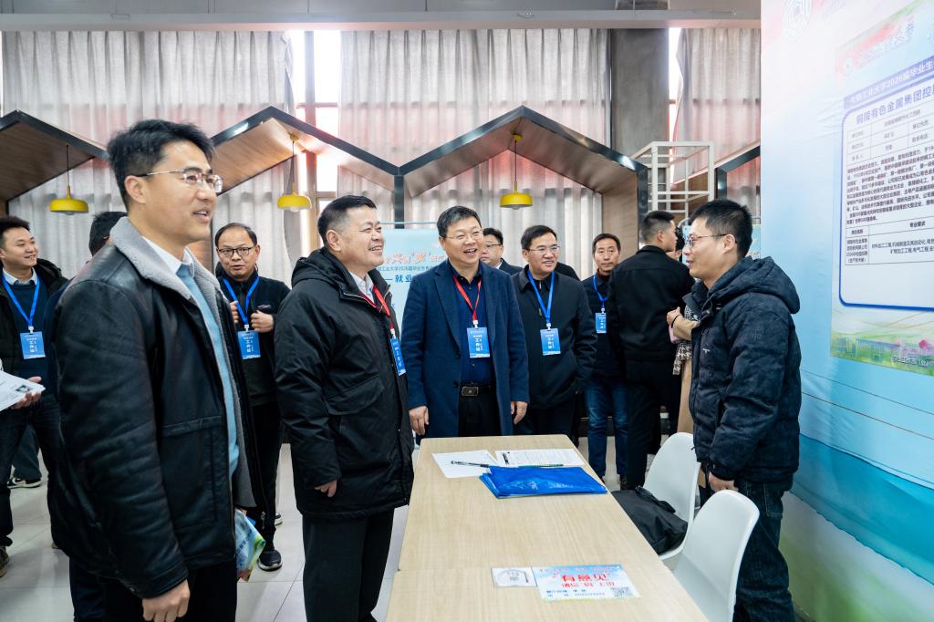 校党委书记陆林,校党委副书记王俊深入现场,与用人单位、毕业生面对面交流。陆林、王俊一行走访了铜陵有色、北京弥天、牧原食品、海天塑机等企业展位,详细了解企业招聘需求、岗位设置、毕业生应聘情况,认真听取用人单位对学校人才培养的建议。学生工作部(大学生就业创业指导中心)负责人协同各学院党政负责人、系室主任及毕业班辅导员现场指导,精准对接企业需求,为毕业生提供全程服务。