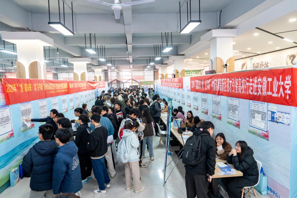 本次双选会汇聚了来自江浙沪皖等16个省市385家企业参加,提供优质就业岗位1.1万余个,其中安徽省16个地市的企业达225家。参会单位涵盖国有企业、民营企业、外商投资企业及科研教育等,包括世界500强、中国500强及众多上市公司,如中国邮政集团、浙江吉利控股、中国民生银行、上海蔚来汽车等。岗位设置全面覆盖本硕博各学历层次,招聘需求紧密贴合国家重大战略导向与区域经济发展布局,重点聚焦新能源汽车、人工智能、高端装备制造等安徽省十一大新兴产业领域。现场吸引了校内外5000余名毕业生求职应聘,投递简历1万余份,达成就业意向1500人次。
