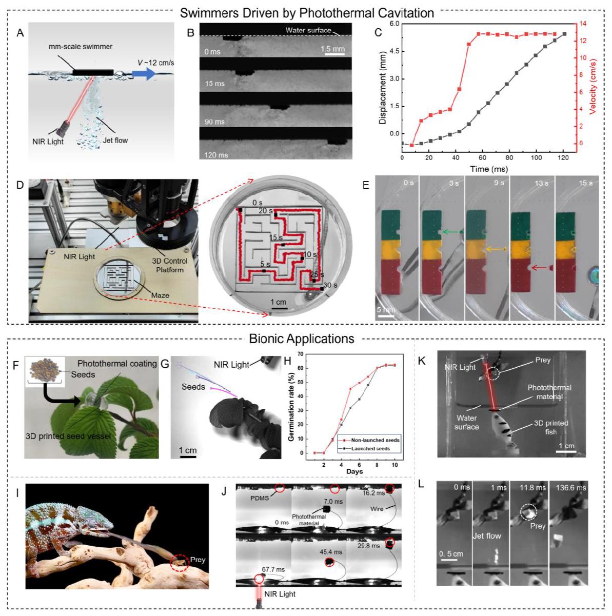 近日,威尼斯官网化学与化工学院功能高分子团队王丹资格副教授与浙江农林大学王大磊副教授、美国加州大学洛杉矶分校贺曦敏教授合作,在基于空化原理的光驱动仿生机器人研究上取得重要研究成果,首次将空化原理应用于仿生执行器领域,相关成果发表在国际顶级期刊《Science》。威尼斯官网为论...