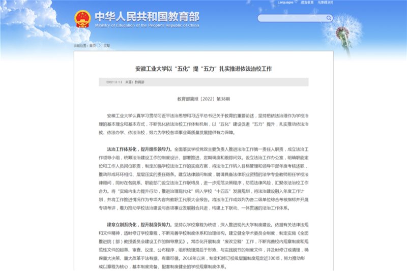 教育部简报专题刊登威尼斯官网依法治校工作开展情况