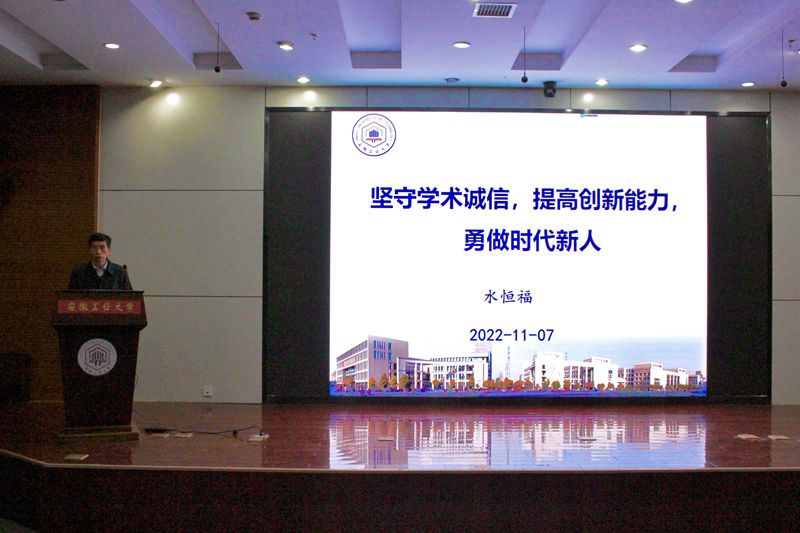 11月7日下午,副校长水恒福在秀山校区图书馆大明报告厅为2022级研究生作题为《坚守学术诚信,提高创新能力,勇做时代新人》的学术诚信专题报告。各研究生培养单位的共150余名研究生聆听了报告会。水恒福从“为什么要坚守学术诚信”、“如何做到学术诚信”、“学术不诚信有什么...