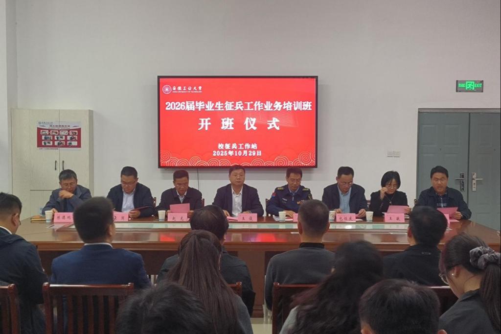 10月29日下午,学校举办2026届毕业生征兵工作业务培训班。校党委副书记、征兵工作站站长王俊,花山区人武部上校政治委员徐学顿出席开班仪式。学生工作部(大学生就业创业指导中心)、研究生工作部、武装部、教务处、后勤处等部门负责人,各学院分管学生工作副书记以及全体2026...