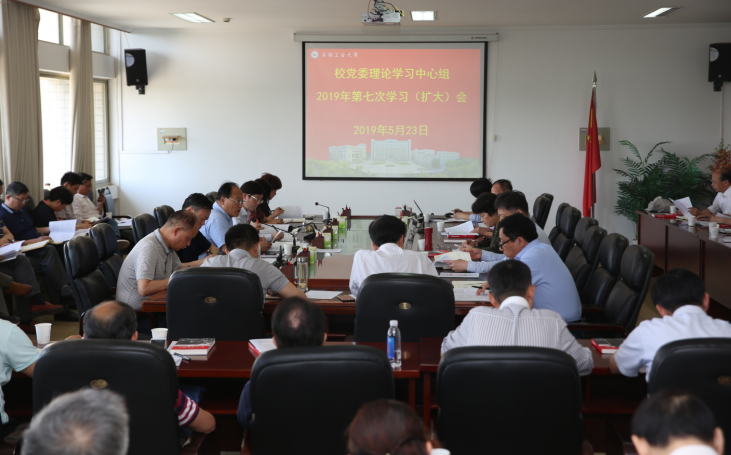 5月23日下午,校党委理论学习中心组召开2019年第七次学习(扩大)会,党委中心组成员,督导员,新一届党委委员、纪委委员,各基层党委(党总支、直属党支部)书记和相关部门负责人参加了会议。校党委书记刘新跃主持会议。