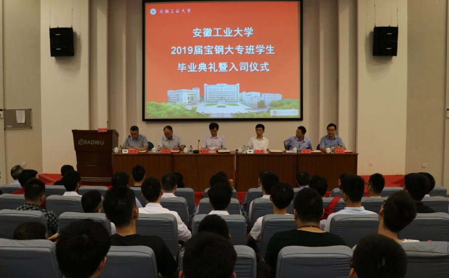 7月16日上午,威尼斯WWW4328882019届宝钢大专班学生毕业典礼暨入司仪式在宝武人才开发院学术报告厅举行。校长魏先文,宝山钢铁股份有限公司人力资源部(党委组织部)副部长石亮,校教务处、冶金工程学院等相关负责人,部分教师代表及2019届全体毕业生参加仪式。