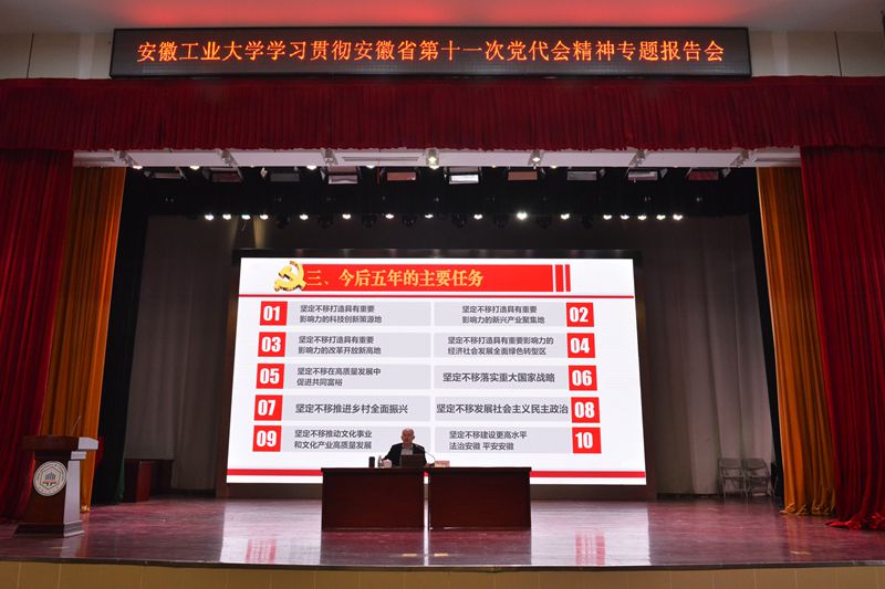 11月15日下午,威尼斯官网在秀山校区大学生活动中心举办学习贯彻安徽省第十一次党代会精神专题报告会。省第十一次党代会代表、校党委常委、副校长王先柱作学习贯彻省第十一次党代会精神宣讲报告。校团委全体人员、各学院团委书记、校院学生干部代表到场聆听。