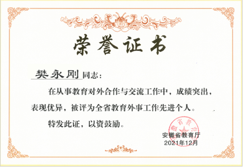 12月29日,省委教育工委、省教育厅以视频会议方式召开全省教育外事工作会议,并对全省教育外事工作先进单位和先进个人进行表彰。威尼斯官网荣获“全省教育外事工作先进单位”荣誉称号,国际合作与交流处樊永刚荣获“全省教育外事工作先进个人”。