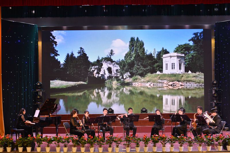 音乐会分为“峥嵘岁月”、“日月新天”、“春天故事”、“复兴之路”四个篇章,以经典乐曲《金蛇狂舞》澎湃开场,热情洋溢、昂扬高亢的旋律拉开了峥嵘岁月的金色过往。民乐合奏《我的祖国》、男生小合唱《弹起我心爱的土琵琶》、男生独唱《松花江上》等慷慨激昂的曲调将先辈顽强拼搏的坚强意志展现的淋漓尽致。西洋乐合奏《红旗颂》、女生小合唱《唱支山歌给党听》、古筝合奏《瑶族舞曲》以及情景剧表演唱《寸心》再现了中国共产党人继往开来、与时俱进的美好奋斗史,表达了人民对党的坚定拥护与热爱。歌曲《把一切献给党》诉说了党员无限忠诚的向党心声。小提琴齐奏《伟大的北京》奏出北京的光辉历史篇章,二胡齐奏《战马奔腾》尽诉边疆战士的赤胆衷肠,生动讲述了改革开放的“春天故事”。管乐重奏《第二圆舞曲》、女生独唱《白鸟》、《七月的草原》以及合唱《灯火里的中国》、《少年》、《领航》共同唱出了闪耀中国、辉煌时代。