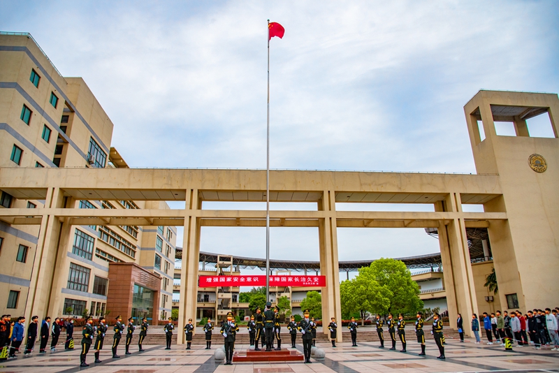 今年4月15日是我国第七个全民国家安全教育日。4月15日清晨,安全保卫部、学生工作部、团委联合马鞍山市公安局在秀山校区教学楼广场举行庄严的升国旗仪式。伴随着雄壮激昂的国歌声,鲜艳的五星红旗迎着朝阳冉冉升起,200余名师生代表参加了升旗仪式。