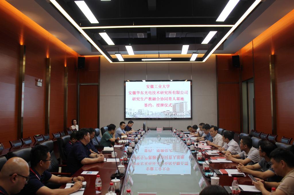 在安徽华东光电技术研究所,魏先文对学校历史、学科发展、人才培养和产学研合作等方面作了介绍。他指出,习近平总书记提出重大科技创新成果是国之重器、国之利器,必须牢牢掌握在自己手上,必须依靠自力更生、自主创新。华东光电以国防安全为“国之大者”,经过近30年的发展,已成为国家唯一定点承担军用特种显示技术的专业研究所,荣获国家科技进步奖特等奖和军队科技进步奖一等奖,多项省市科技进步奖项,为我国航天事业作出了突出的贡献。希望以此次研究生产教融合协同育人基地协议签订为契机,在前期合作的基础上,深化双方在产学研用、研究生教育、毕业生就业、博士后联合培养、联合基地建设等方面的合作,进一步找准切入点,集中双方优势,发扬双方所长,持续推进协同创新。