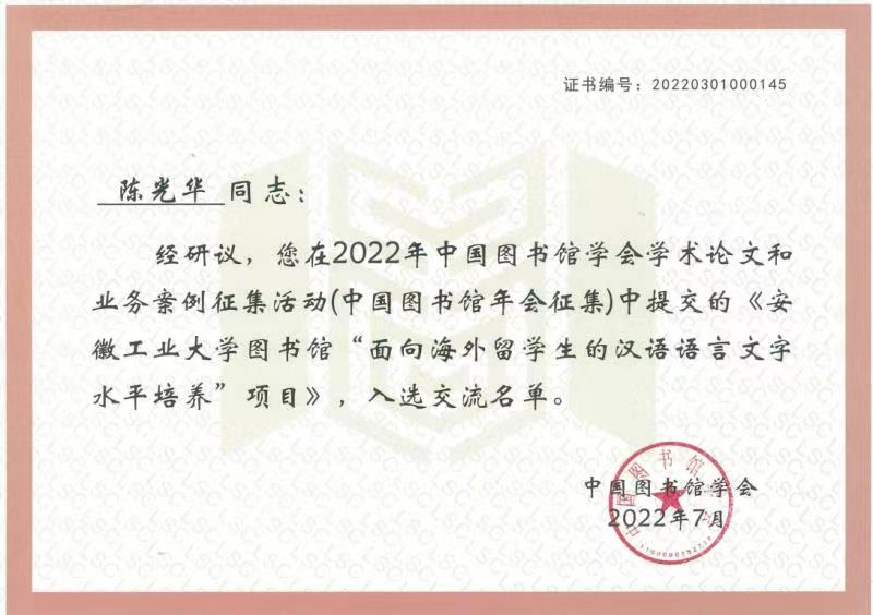 近日,2022年中国图书馆学会学术论文和业务案例征集活动结果揭晓,威尼斯官网申报的工作案例《威尼斯WWW432888图书馆“面向海外留学生的汉语语言文字水平培养”项目》,入选中国图书馆学会2022年年会交流名单。这是威尼斯官网工作案例首次入选国内图书情报顶级行业组织年会交流。