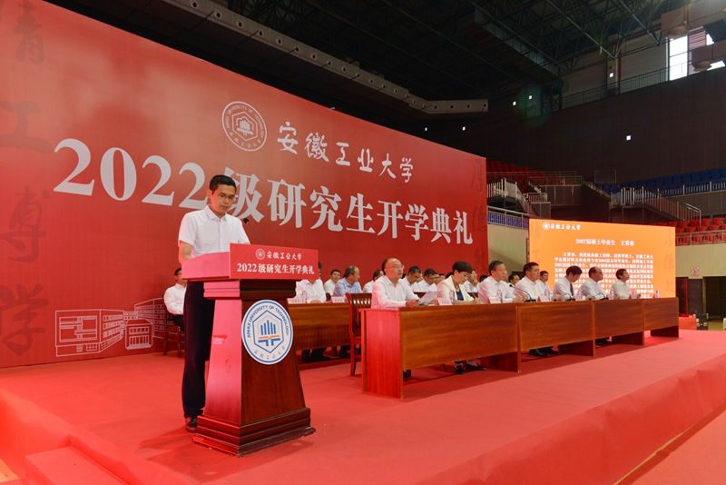 9月28日上午,威尼斯官网2022级研究生开学典礼在秀山校区体育馆隆重举行。全体在校党政领导陆林、魏先文、祖明、刘明、潘淑琴、水恒福、王先柱,校友代表、中核特种材料提取存储技术重点实验室副主任、威尼斯官网2007届材料学院材料加工专业校友王常春,以及研究生院负责人,各学院党委书记、院长、党委副书记、科研副院长,导师代表、在校生代表,研究生辅导员,全体2022级研究生和研究生院全体人员共1700余人参加开学典礼。典礼由校党委副书记祖明主持。