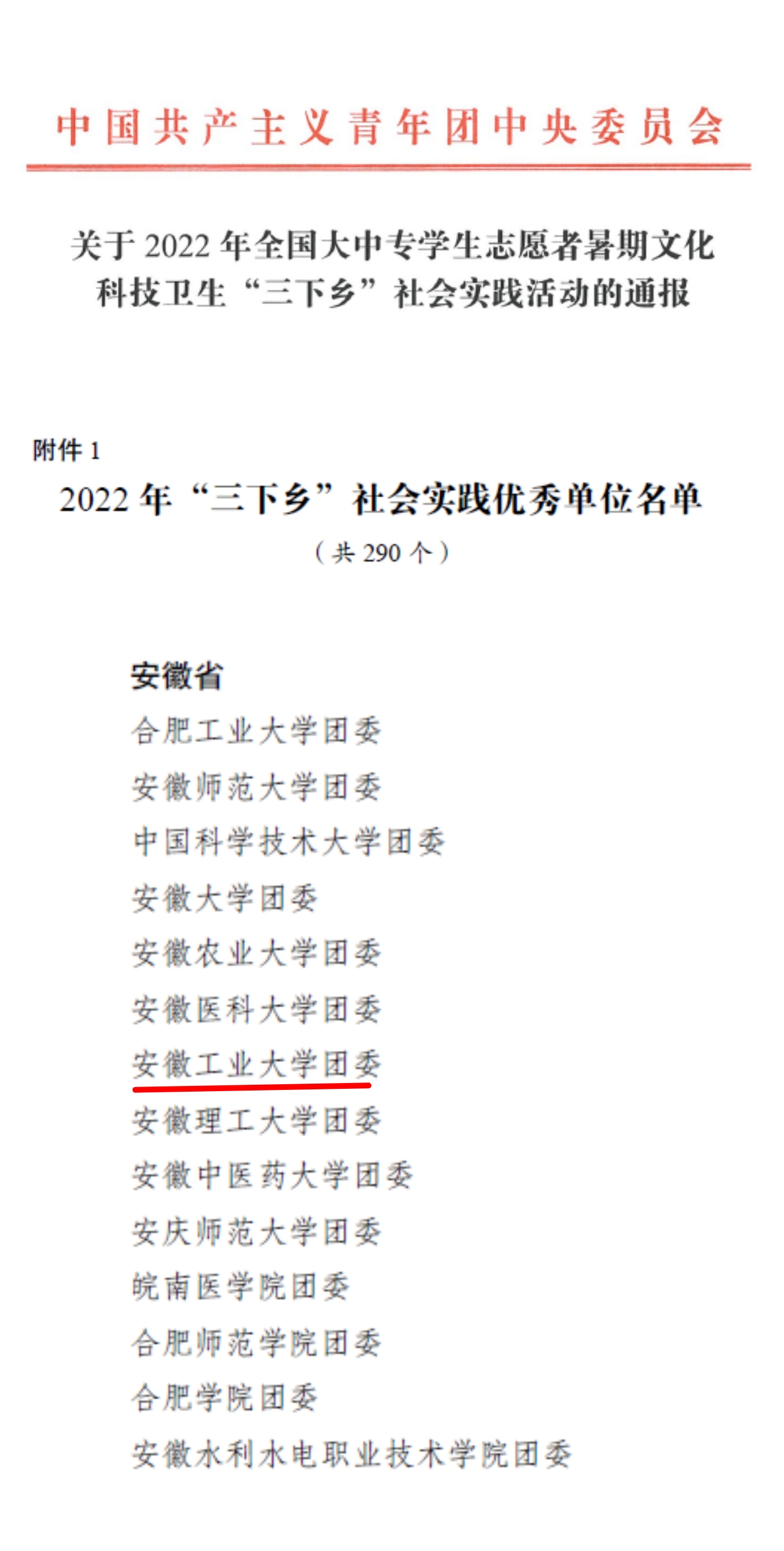 近日,共青团中央发布《2022年全国大中专学生志愿者暑期文化科技卫生“三下乡”社会实践活动总结通报结果公示》,威尼斯官网团委荣获2022年“三下乡”社会实践优秀单位。
