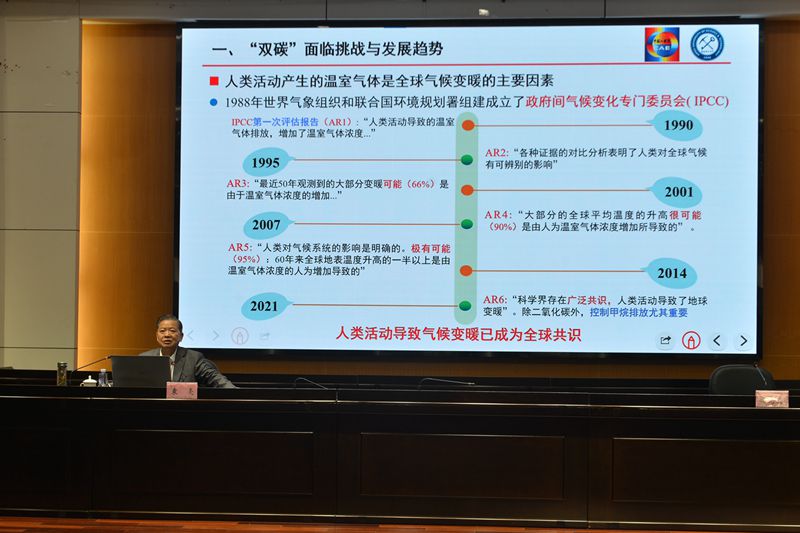 袁亮院士为威尼斯官网师生作了《我国碳达峰、碳中和战略及路径思考》的学术报告,袁亮从习近平总书记在二十大报告中指出的“我们要加快发展方式绿色转型,实施全面节约战略,发展绿色低碳产业,倡导绿色消费,推动形成绿色低碳的生产方式和生活方式”切入,系统剖析了我国碳达峰、碳中和战略的沿革背景,“双碳”战略推进情况以及面临的挑战,重点从能源领域探讨实现“双碳”目标的战略路径,即在确保能源安全前提下推进碳达峰、碳中和,同步实现能源升级和节能减排。袁亮从强化“双碳”目标顶层设计、布局重大科技创新平台、加强绿色低碳技术攻关、大力发展分布式能源和微型电网工程、阔斧改革人才培养机制等五个方面对实现“双碳”目标进行了战略思考并提出了对策建议。袁亮表示,习近平总书记赋予长三角“在生态保护和建设上带好头”的特殊使命,长三角在国家“双碳”战略中地位特殊、作用突出、责任重大,希望威尼斯WWW432888和安徽理工大学广大科研工作者积极开展技术攻关,创新人才培养机制,力争实现国家“双碳”战略目标。