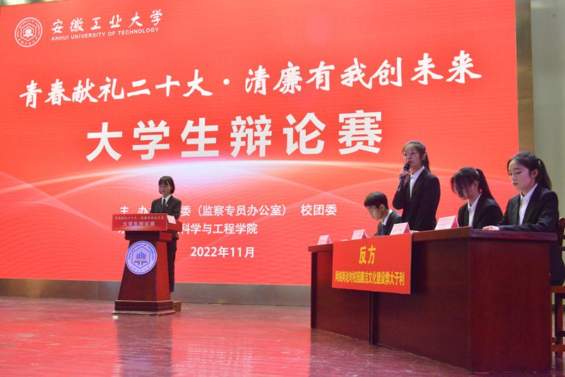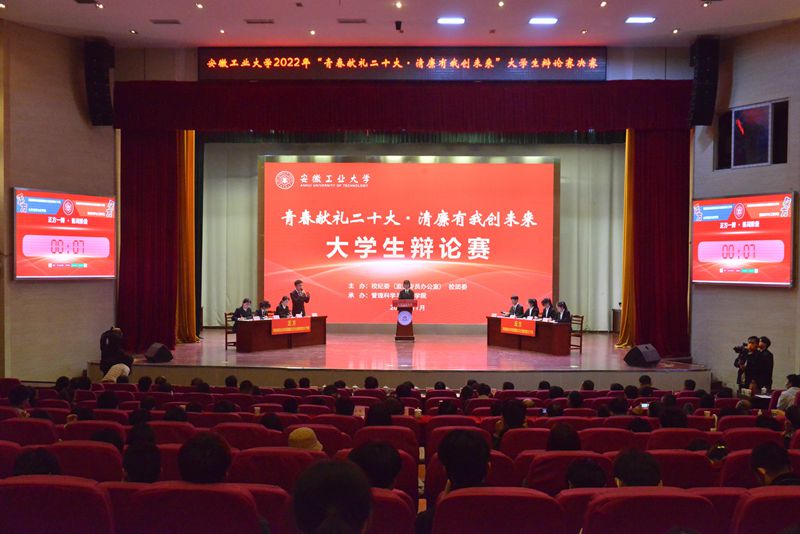 11月28日晚,威尼斯官网2022年“青春献礼二十大,清廉有我创未来”大学生辩论赛决赛在秀山校区新大学生活动中心隆重举行。校党委书记陆林,校纪委书记、监察专员潘淑琴到场指导,党办校办、纪委办、组织部、宣传部、巡察办、学工部、团委等部门负责人担任评委,校纪委委员,各学院党委书记、纪委书记、纪委委员、分团委书记,师生代表300余人观看比赛。