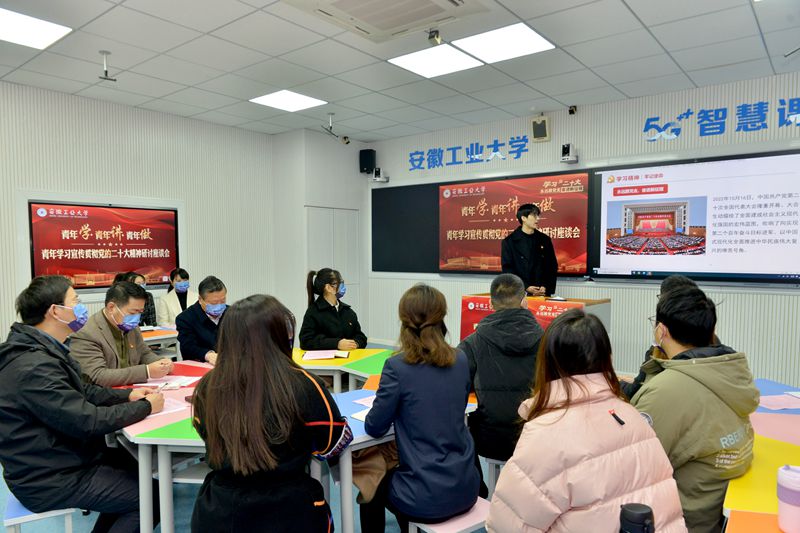 公共管理与法学院裴俊齐、材料科学与工程学院江依洋、外国语学院陈栉雨、微电子与数据科学学院陈广州、计算机科学与技术学院邵世华、商学院刘文庆等六位学生代表,以及电气与信息工程学院甘如美江、建筑工程学院印路路、艺术与设计学院张浩霆、马克思主义学院刘丹丹、团委赵美男、后勤处涂必华、表界面研究中心张林等六位青年教职工代表分别结合自身工作、学习、生活从不同角度畅谈自己对于党的二十大精神的所思、所悟、所行。